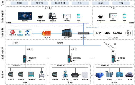 智慧能碳管理平臺,融合“了物聯(lián)網+互聯(lián)網+大數(shù)據”等技術,對企業(yè)水、電、氣、冷、熱等能源使用狀況管理,及現(xiàn)場壓力、溫濕度、設備運行健康度等參數(shù)實行集中監(jiān)測、管理和分散控制,實現(xiàn)不同場景下的能源及碳排放監(jiān)測、分析、管理、評估和預測,為企業(yè)的節(jié)能降碳、精益能效管理提供數(shù)字化平臺。