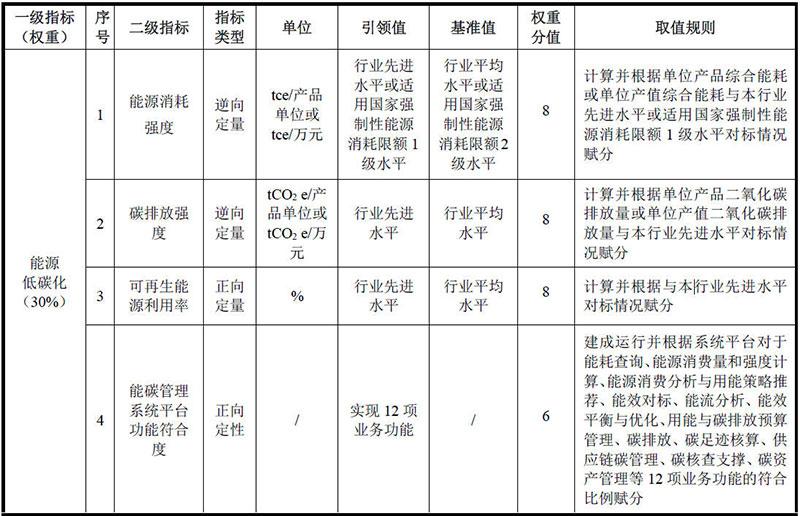 c) 提出綠色低碳發(fā)展中長期規(guī)劃及年度目標(biāo)、指標(biāo)和實(shí)施方案??尚袝r(shí),指標(biāo)應(yīng)明確且可量化,包含適用綠色工廠評(píng)價(jià)指標(biāo)要求;