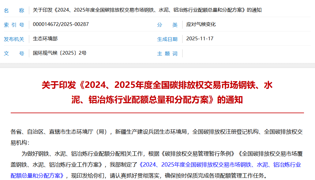 為加快建成更加有效、更有活力、更具國(guó)際影響力的碳市場(chǎng),助力實(shí)現(xiàn)碳達(dá)峰碳中和目標(biāo),生態(tài)環(huán)境部于近日出臺(tái)《2024、2025年度全國(guó)碳排放權(quán)交易市場(chǎng)鋼鐵、水泥、鋁冶煉行業(yè)配額總量和分配方案》,對(duì)2024、2025年度配額分配范圍和方法、配額發(fā)放、配額清繳、配額結(jié)轉(zhuǎn)等各項(xiàng)工作進(jìn)行了安排部署。